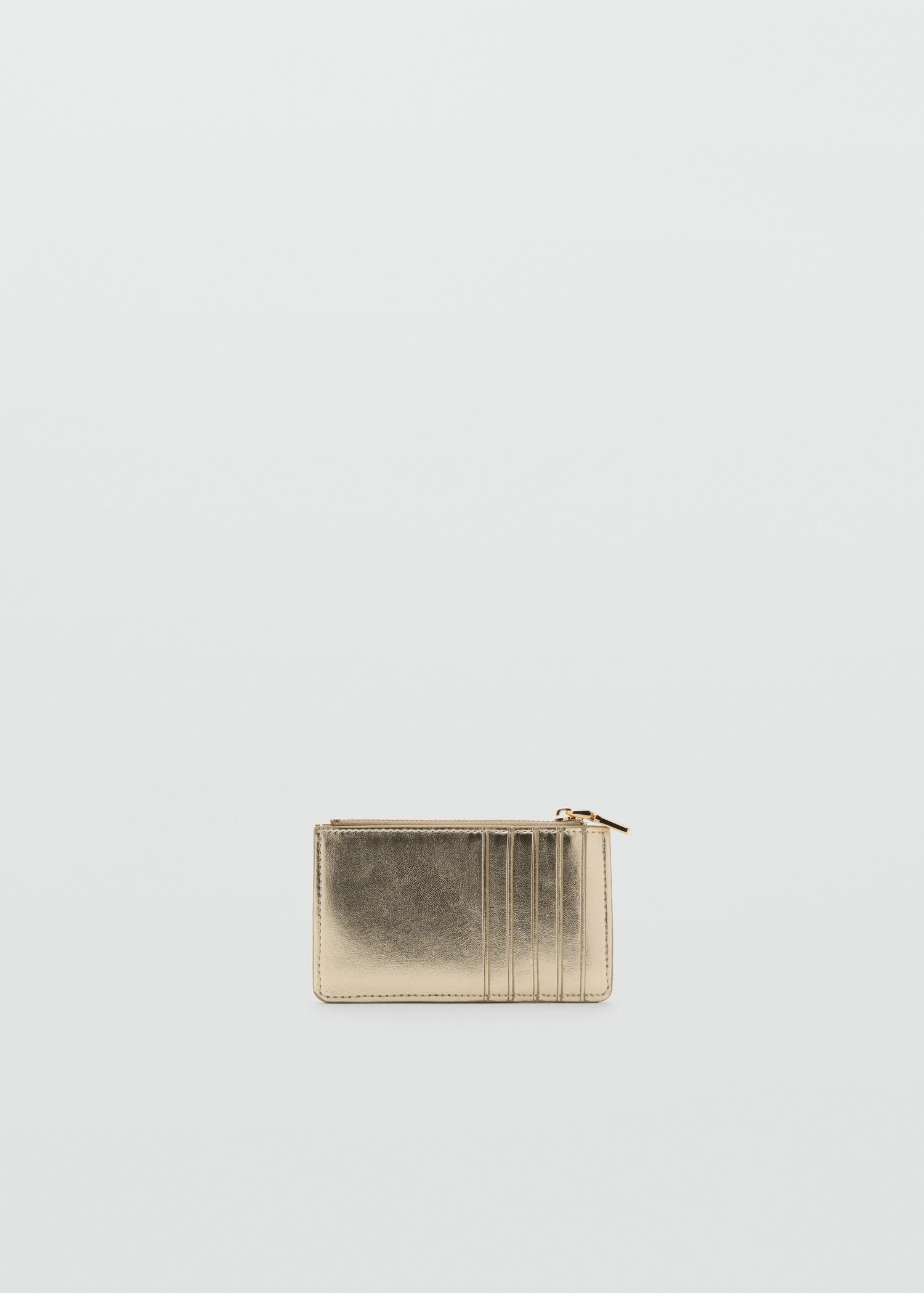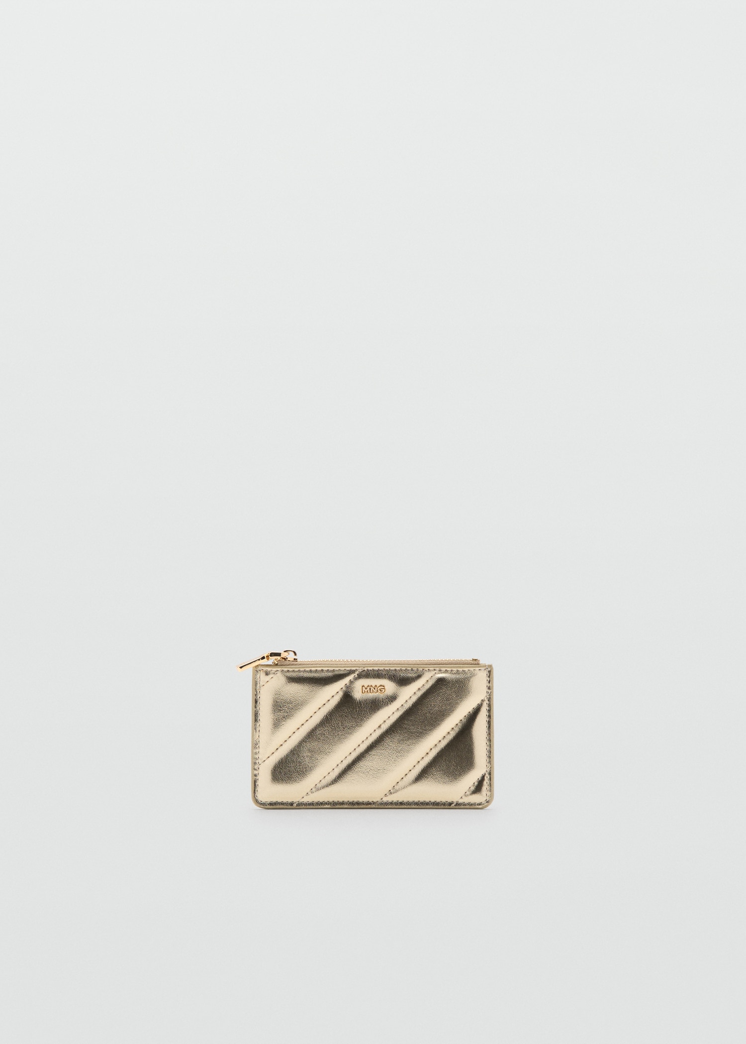 Малък размер. Капитониран дизайн. Метализиран ефект. Пет слота за карти. Затваряне с цип.