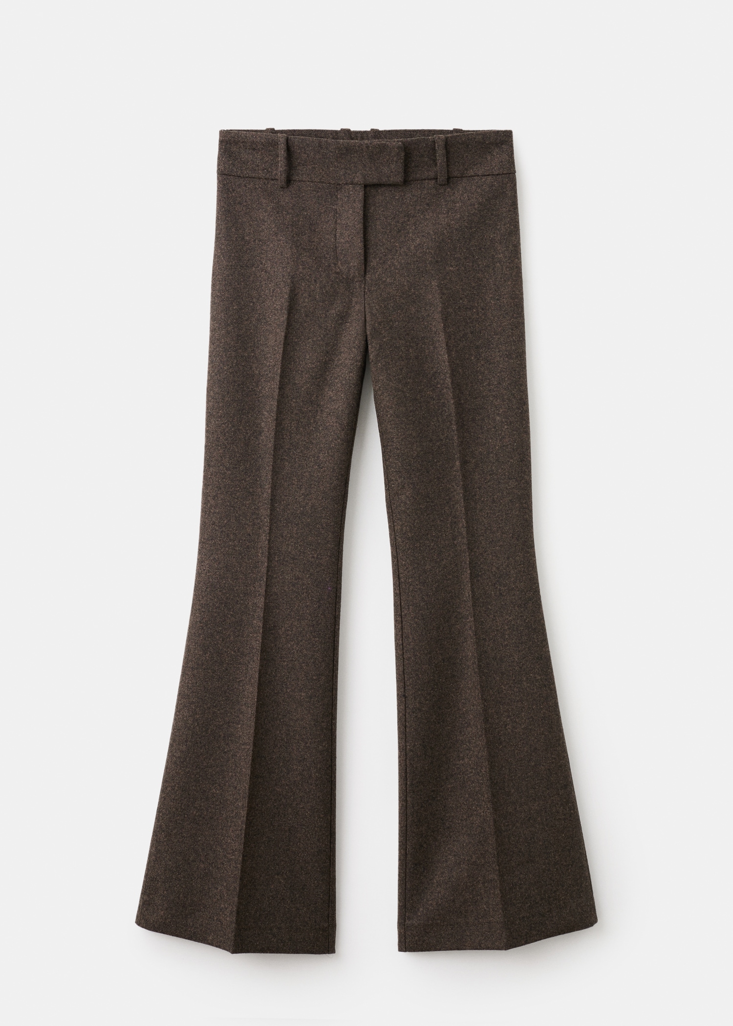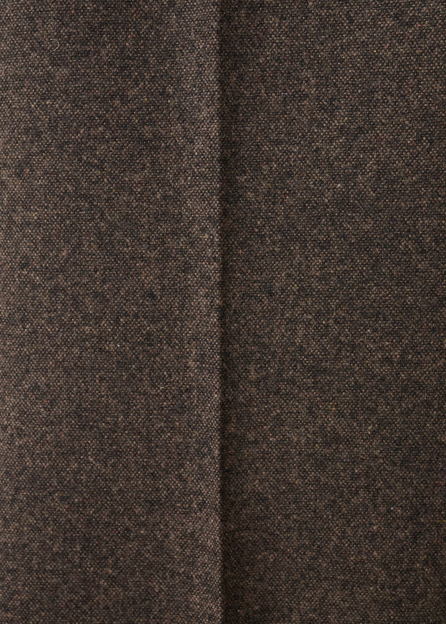 Смесена вълнена материя. Меланжиран жакард. Стил костюм. Дълъг дизайн. Разкроен стил. Средна талия. Халки за колан. Цип, копче и скрито закопчаване с лента с цип. Вътрешна подплата.