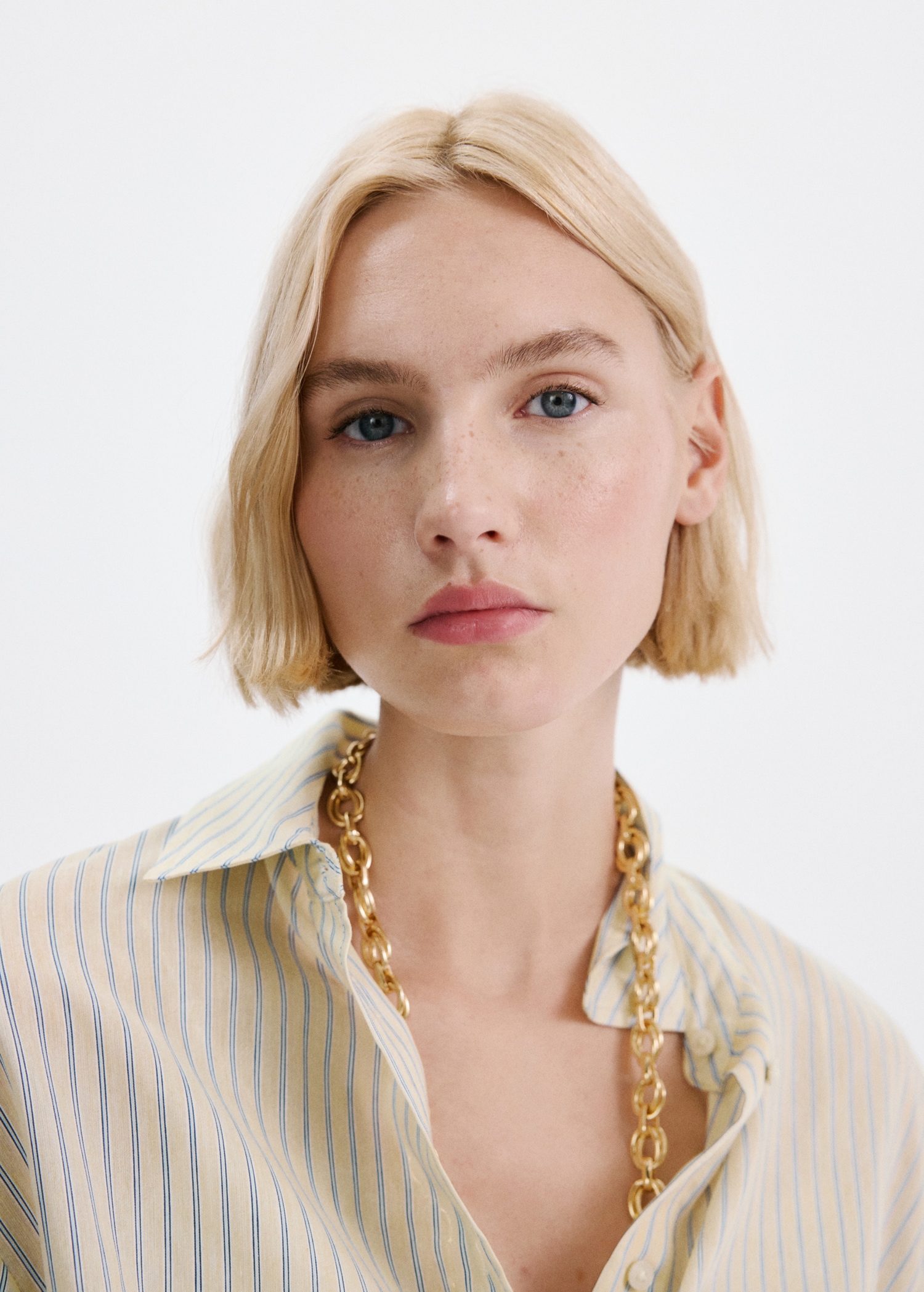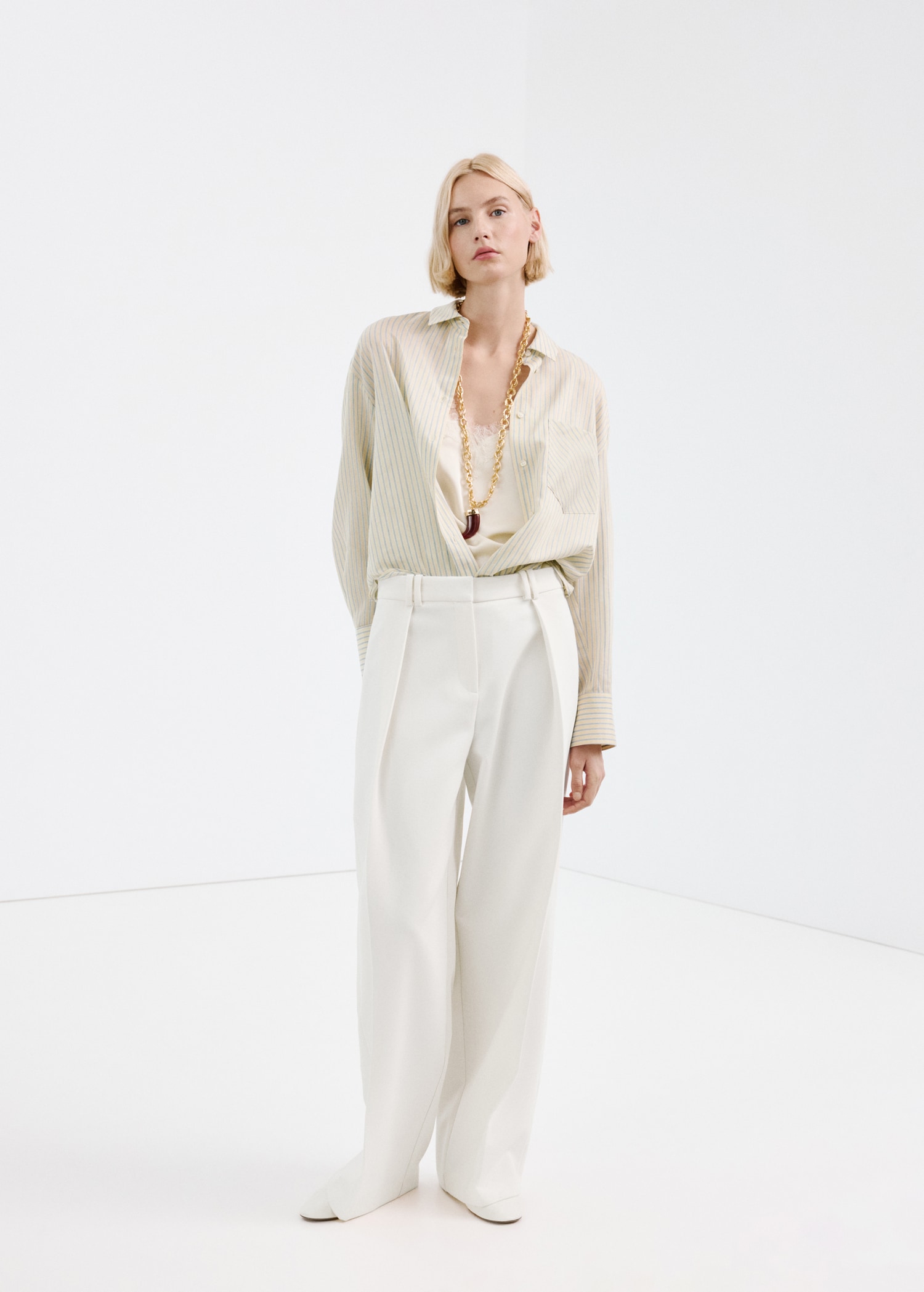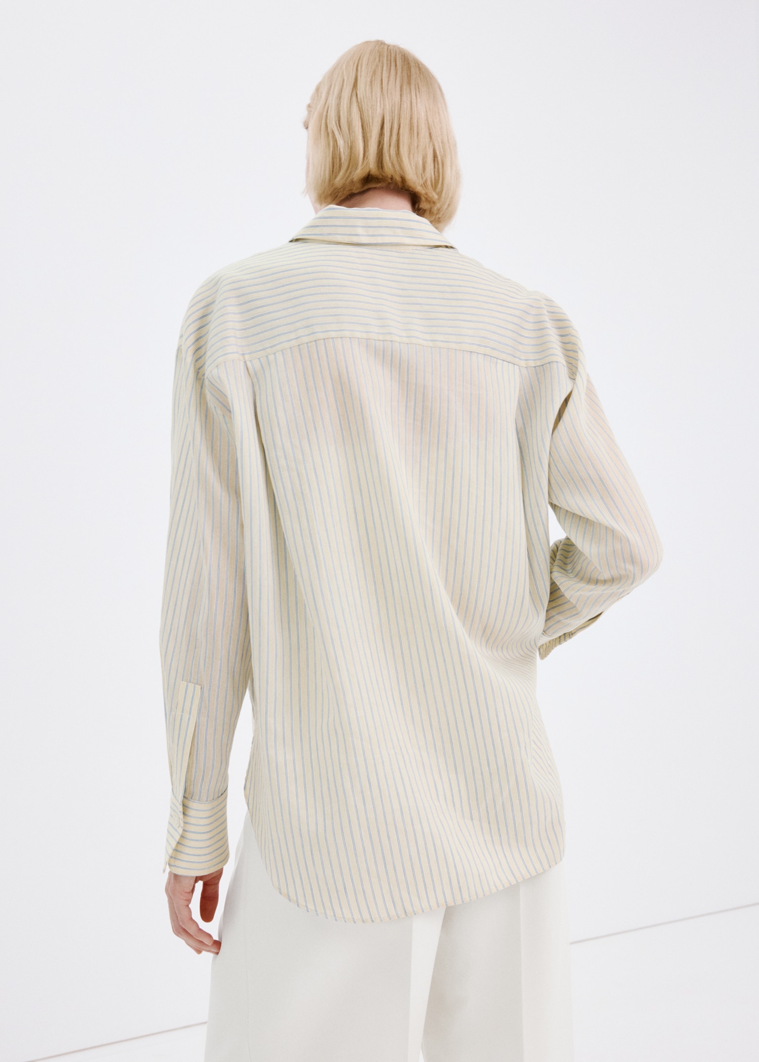 Лиоцел плат. Прав дизайн. Райе принт. Яка тип риза. Дълъг ръкав с копчета на маншетите. Предно закопчаване с копчета.