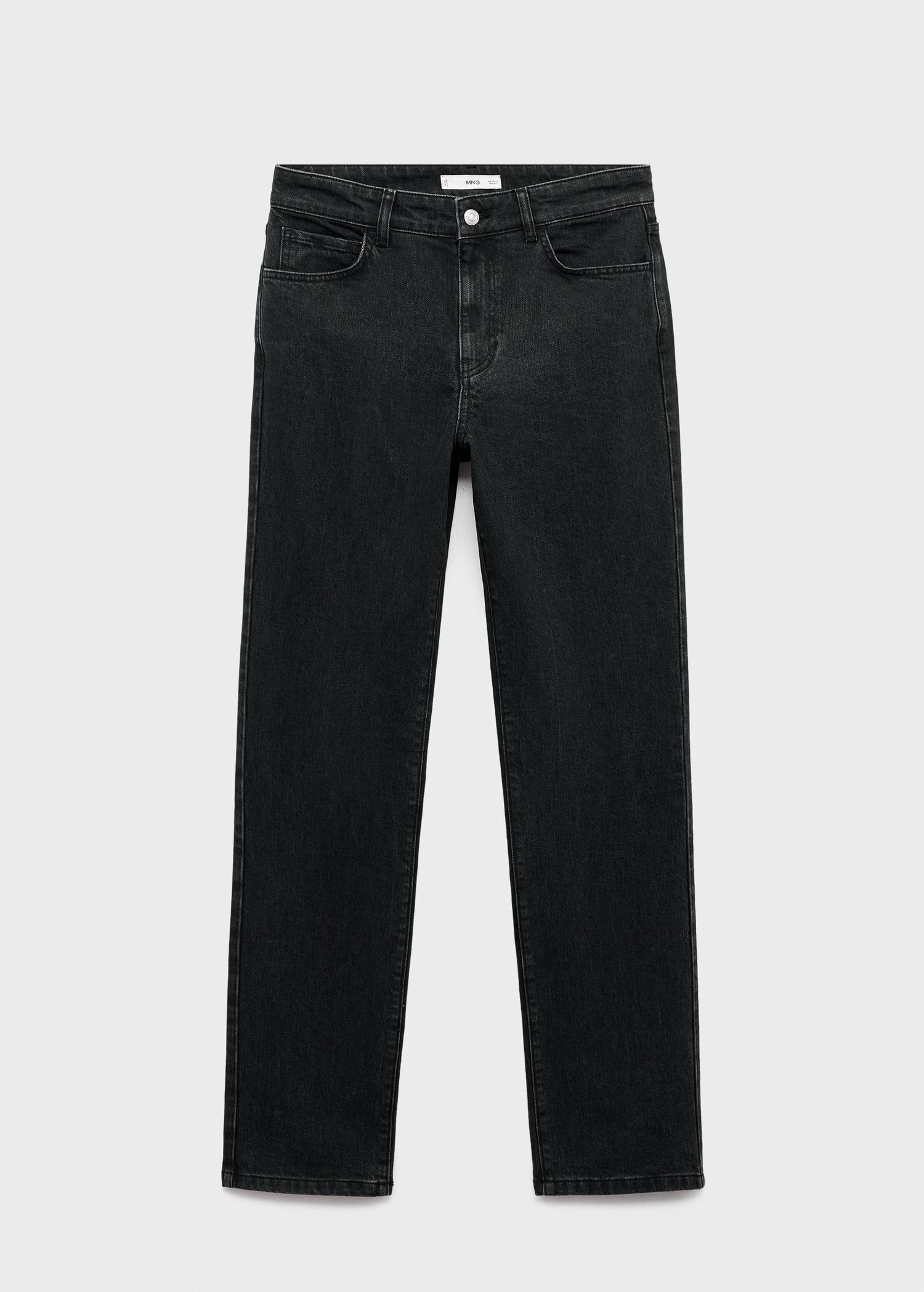 Памучна материя в стил деним. Стандартна дължина. Силует Slim. Висока талия. Халки за колан. Пет джоба. Закопчаване с копче и цип. Удобна еластична материя.