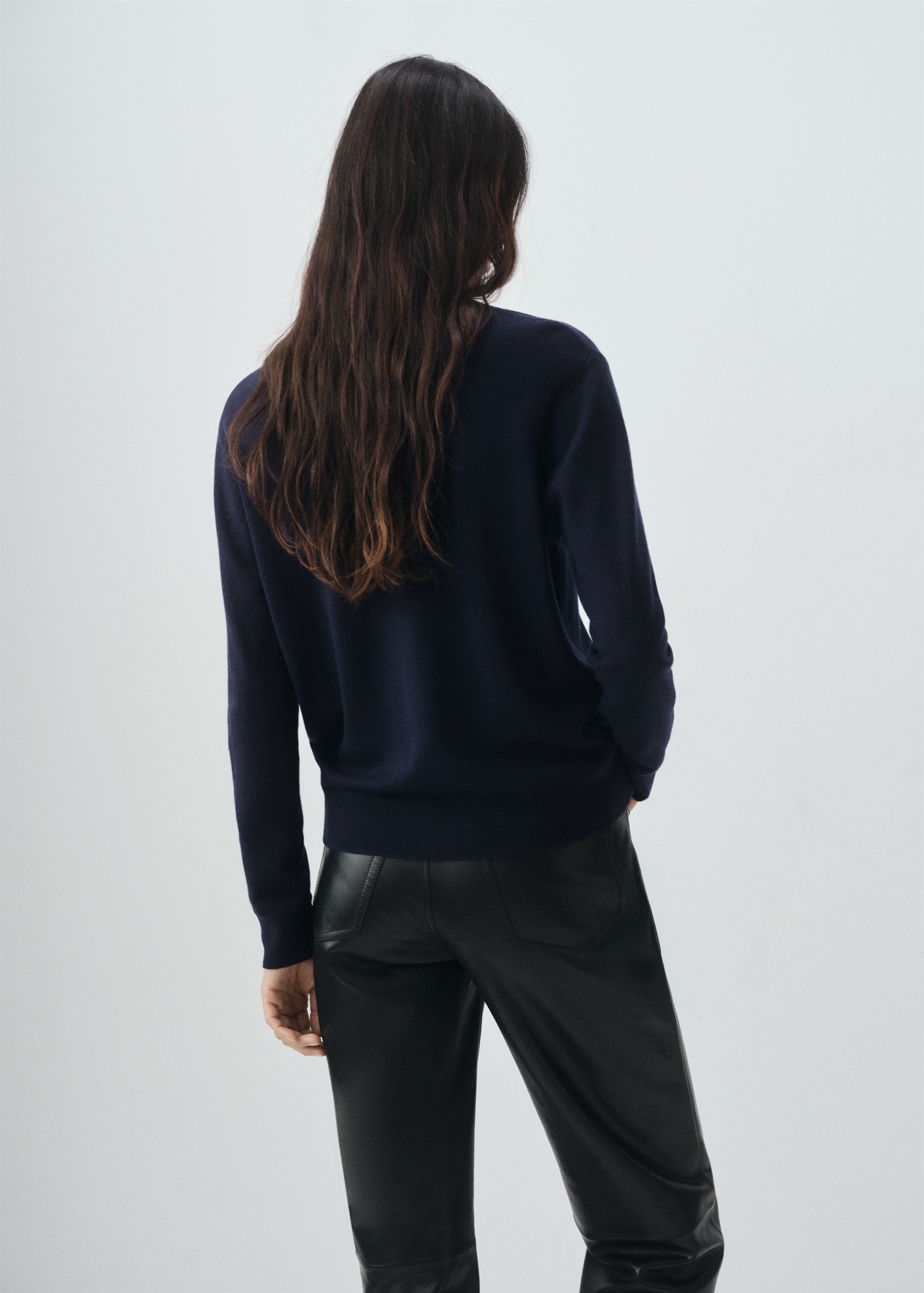 Изработен от 100% фина плетена вълна, този прав дизайн има кръгло деколте и дълги ръкави. Без закопчаване.
