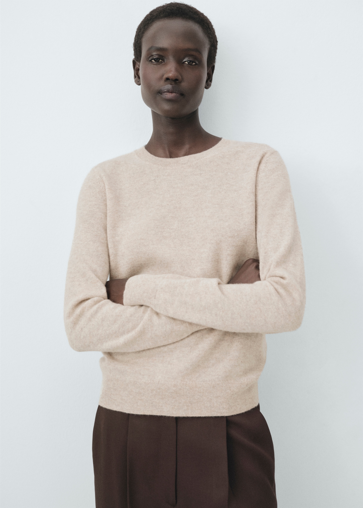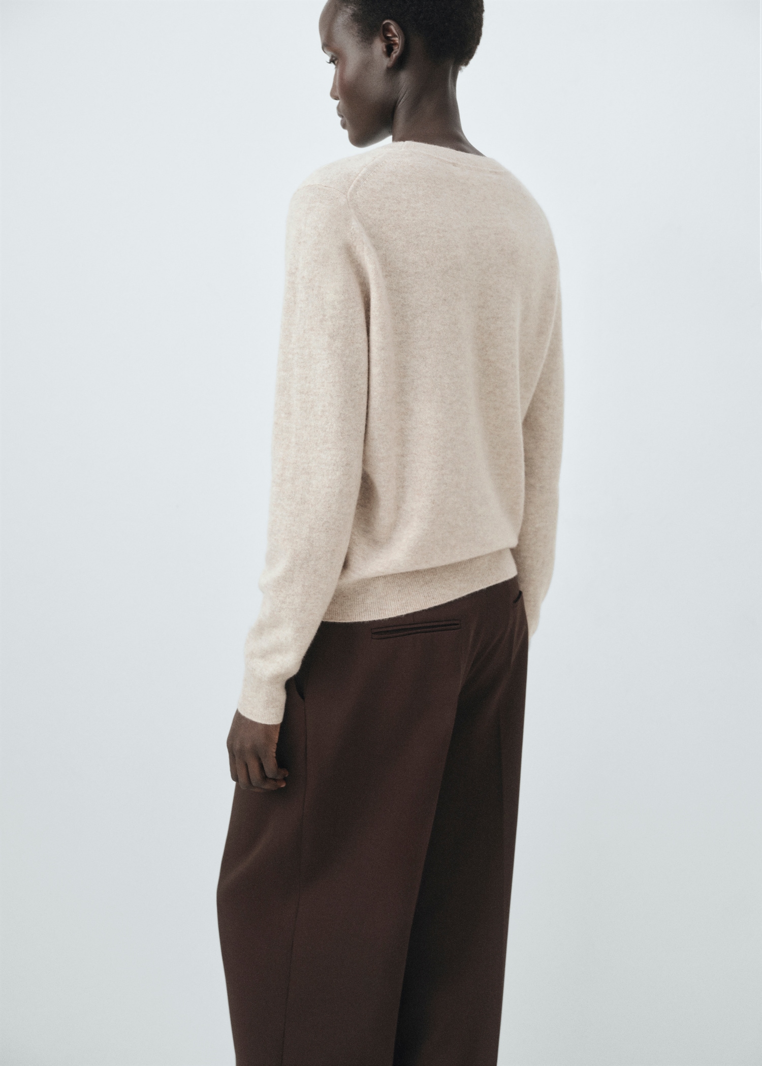 Изработен от 100% кашмирен фин трикотаж, този прав дизайн има кръгло деколте и дълги ръкави. Без закопчаване.