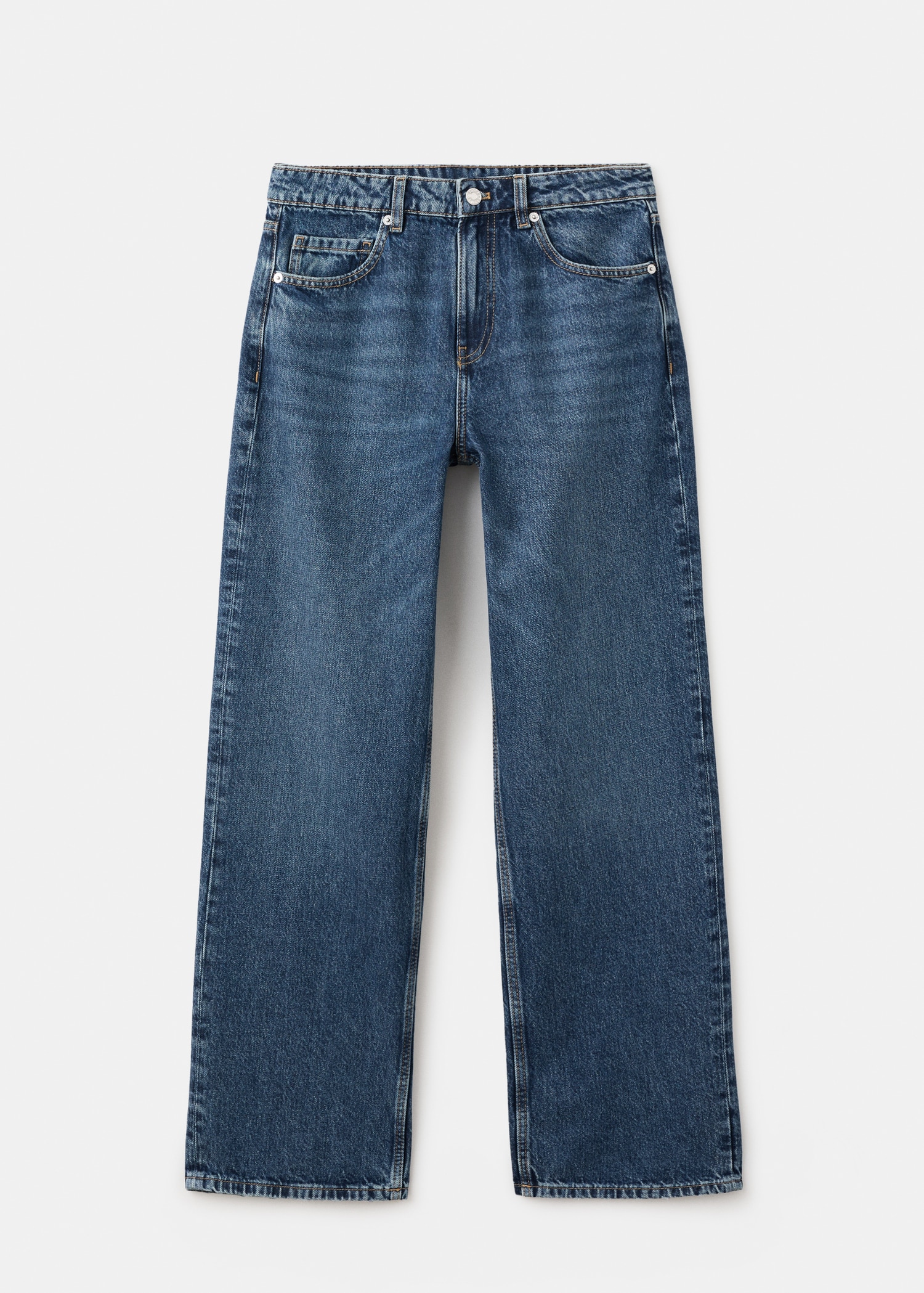 Памучна материя в дънков стил. Дълъг дизайн. Прав силует. Ниска талия. Халки за колан. Пет джоба. Предно закопчаване с цип и копче.
