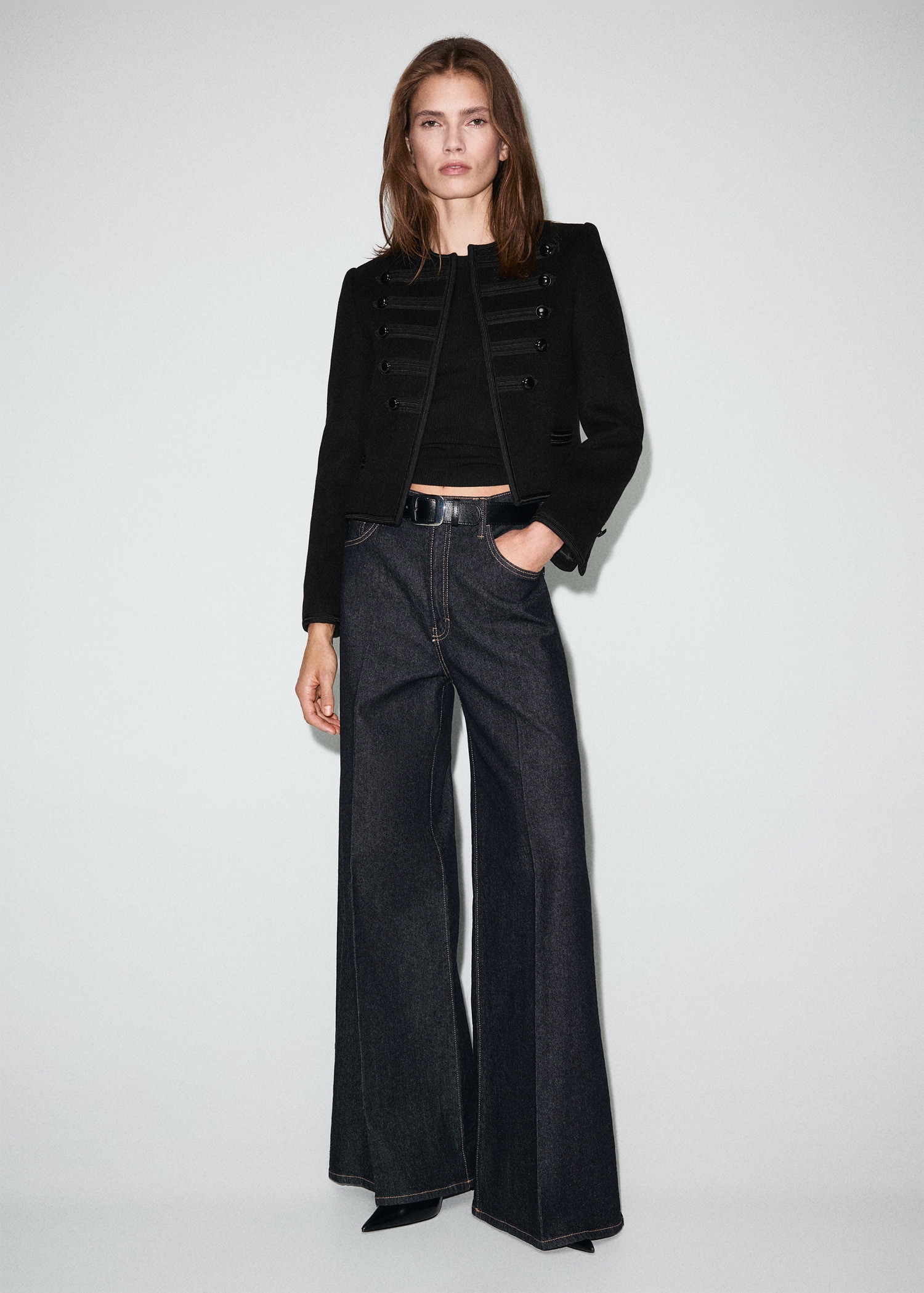 Смесена вълнена материя. Военен стил. Втален дизайн. Къс дизайн. Обло деколте. Дълъг ръкав. Два странични джоба с кант. Без закопчаване. Вътрешна подплата.