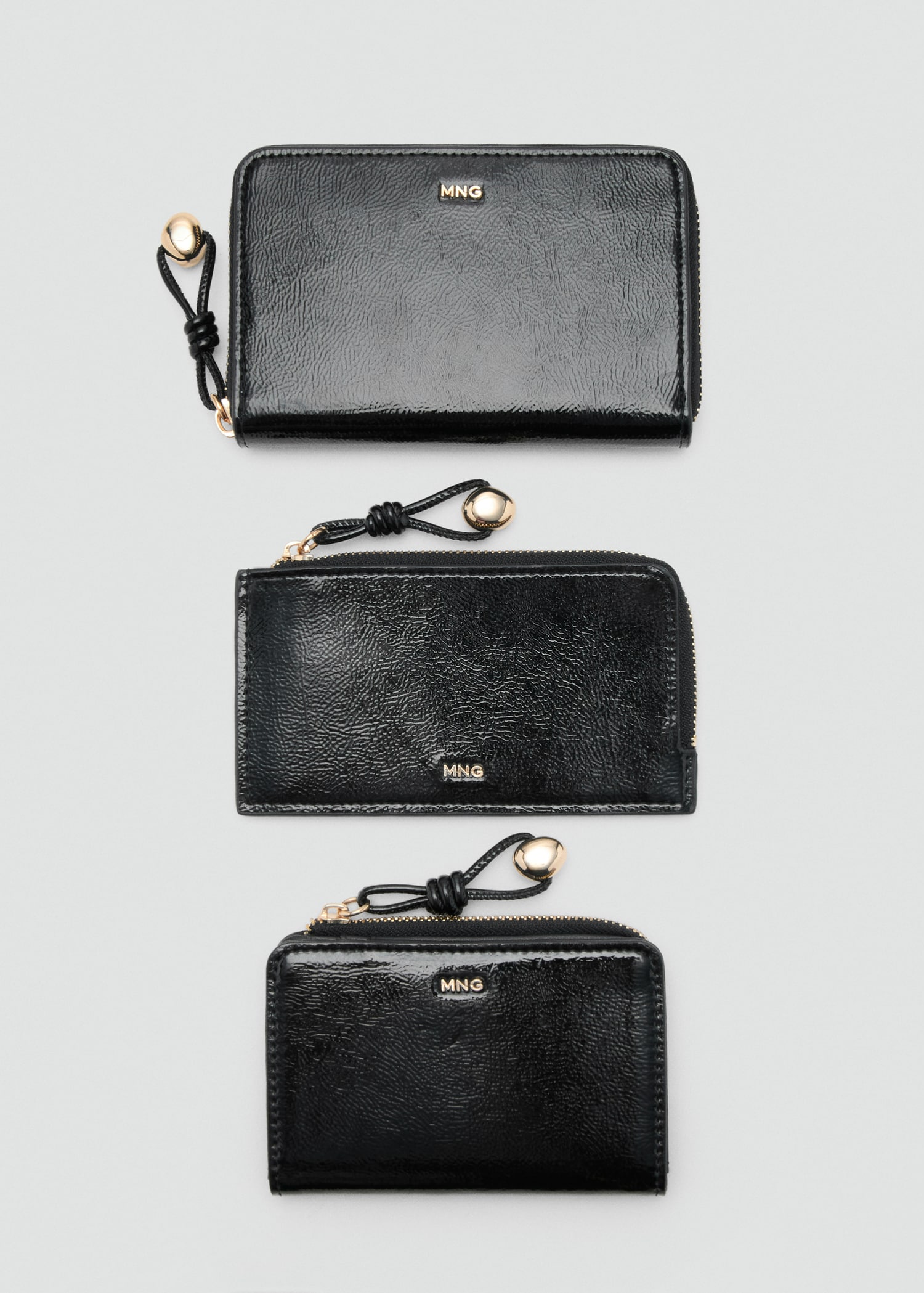 Среден размер. Ефект кожа. Няколко отделения за карти. Джоб с цип. Метално мънисто. Затваряне с цип.