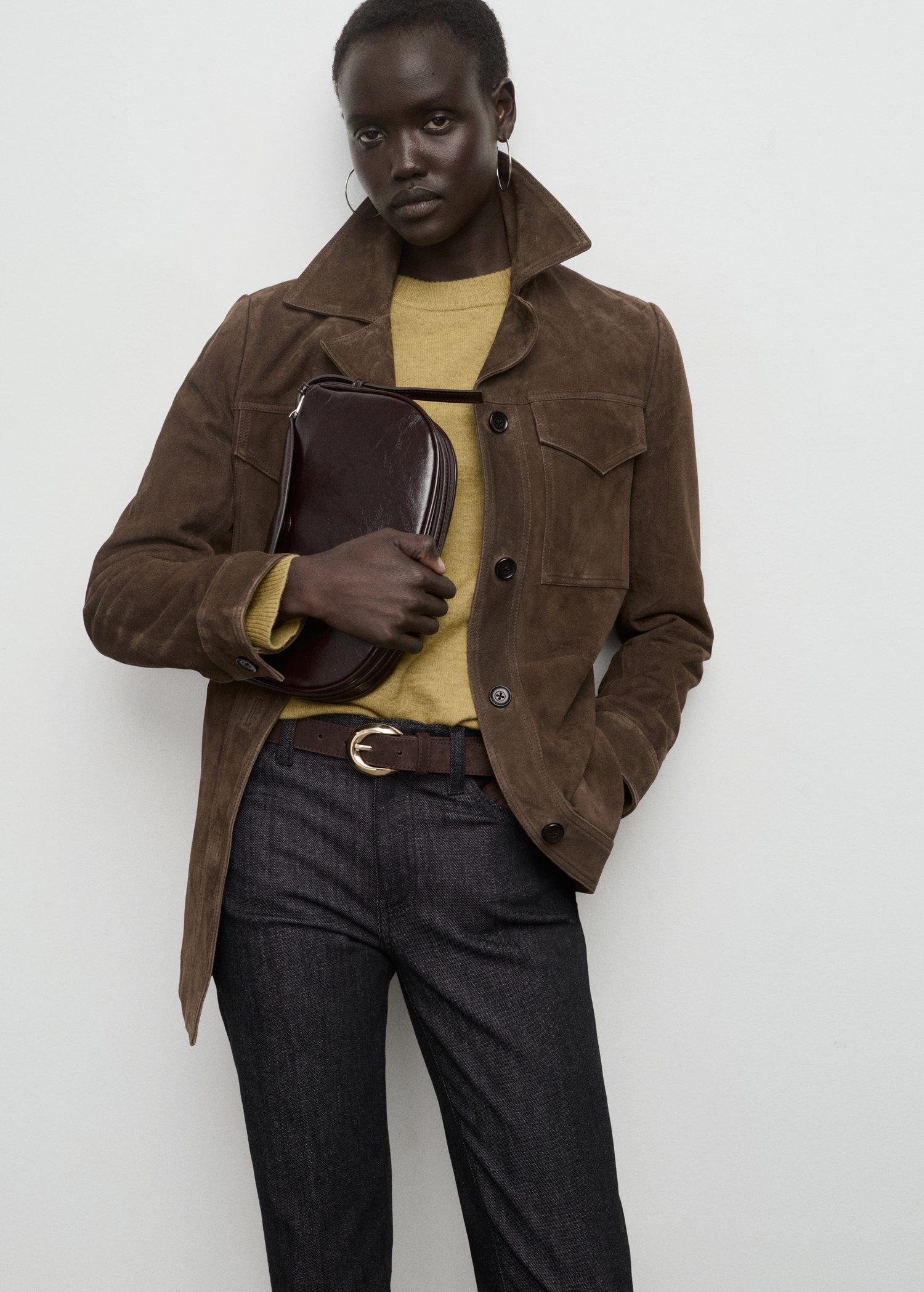 Памучна материя в стил деним. Дълъг дизайн. Разкроен стил. Средна талия. Халки за колан. Пет джоба. Предно закопчаване с копче, кука и скрит цип с капак. Удобна еластична материя.