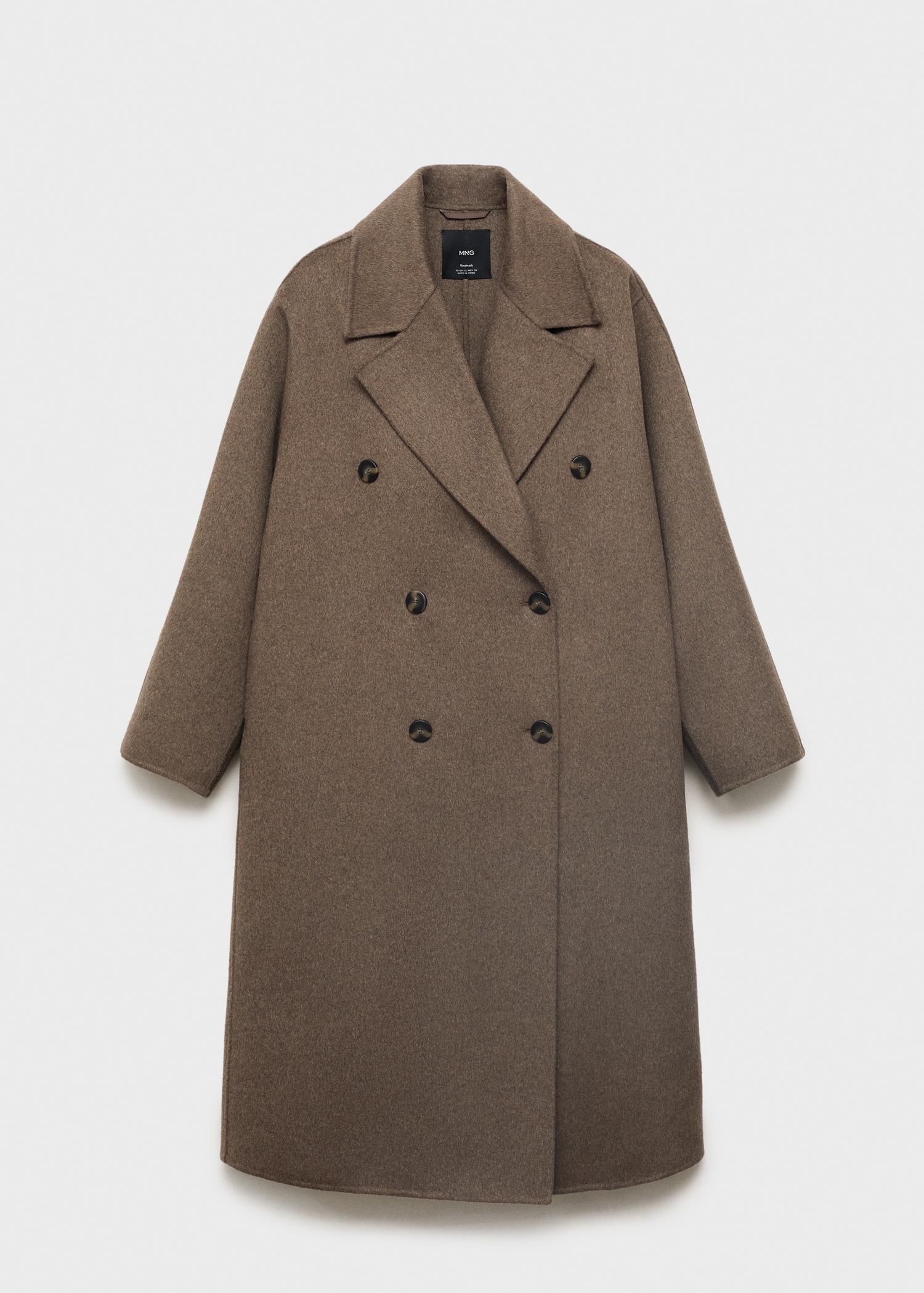 Ръчна изработка. Смесена материя с вълна. Дълъг дизайн. Оверсайз дизайн. V-образно деколте с ревер. Яка с прорез. Дълъг ръкав. Два странични джоба. Двуредно закопчаване.