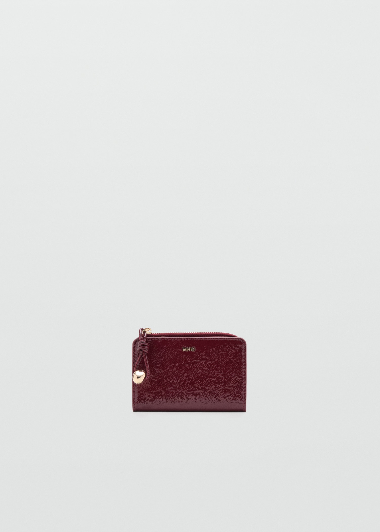Малък размер. Ефект кожа. Шест отделения за карти от едната страна. Метално мънисто. Джоб с цип. Закопчаване с едно секретно копче.