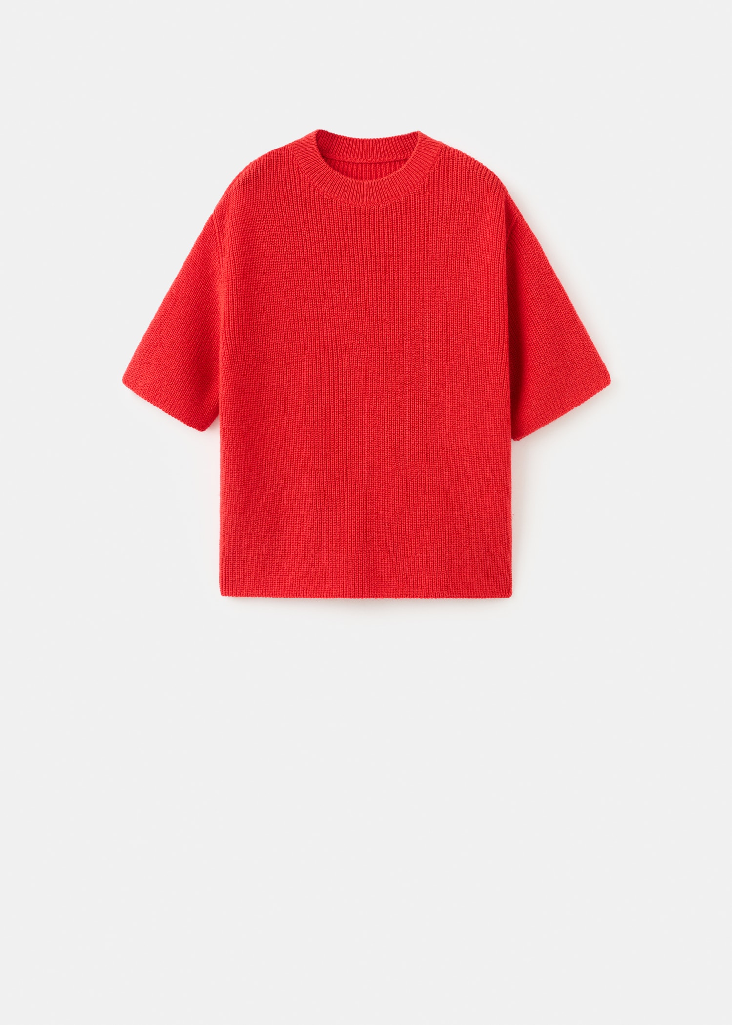 Средно плетиво. Прав дизайн. Кръгло деколте. Три четвърти ръкав. Без закопчаване.