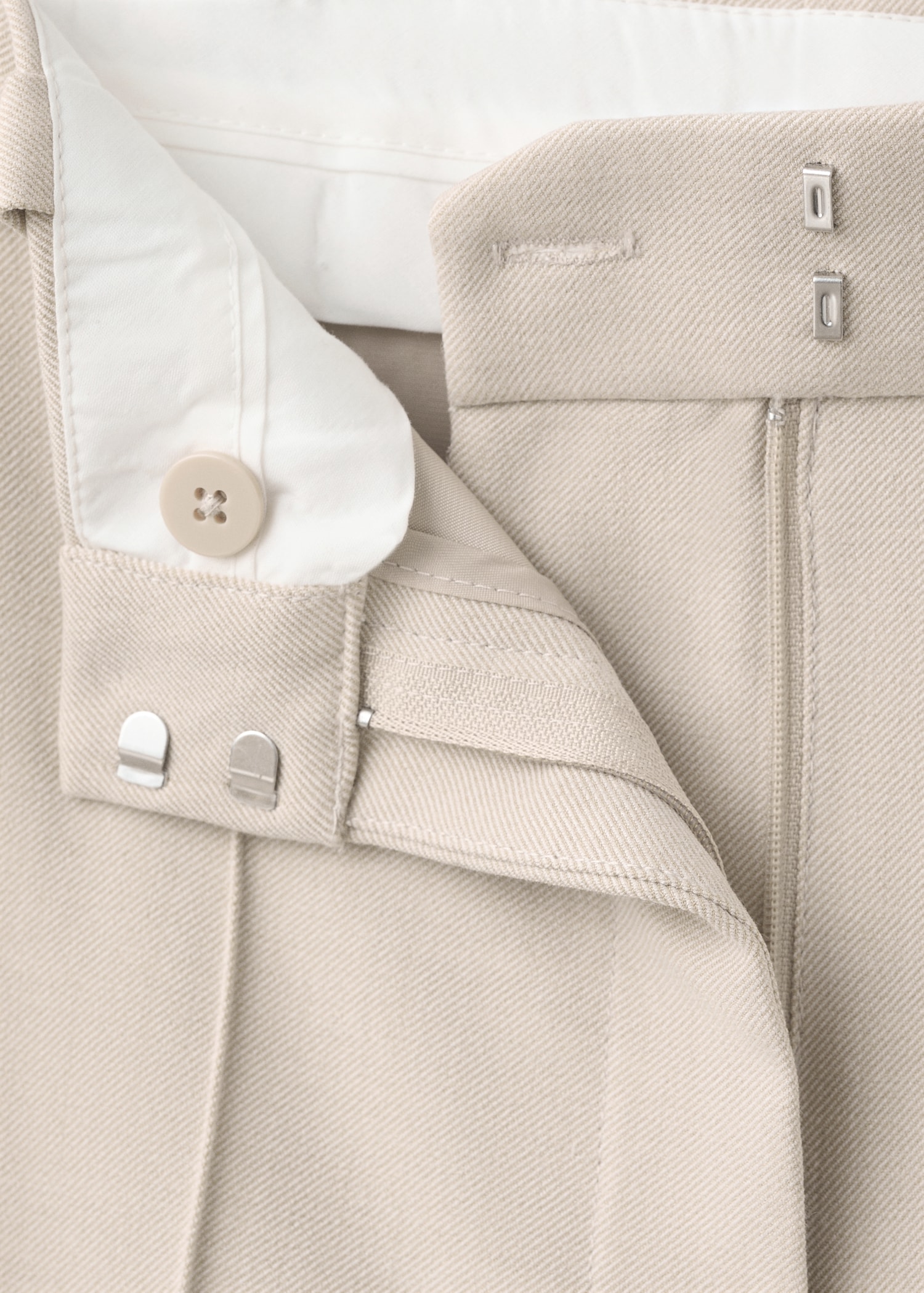 Дълъг дизайн. Прав силует. Средна височина. Халки за колан. Два странични джоба. Скрито закопчаване с копче, кука и цип. Вътрешна подплата.