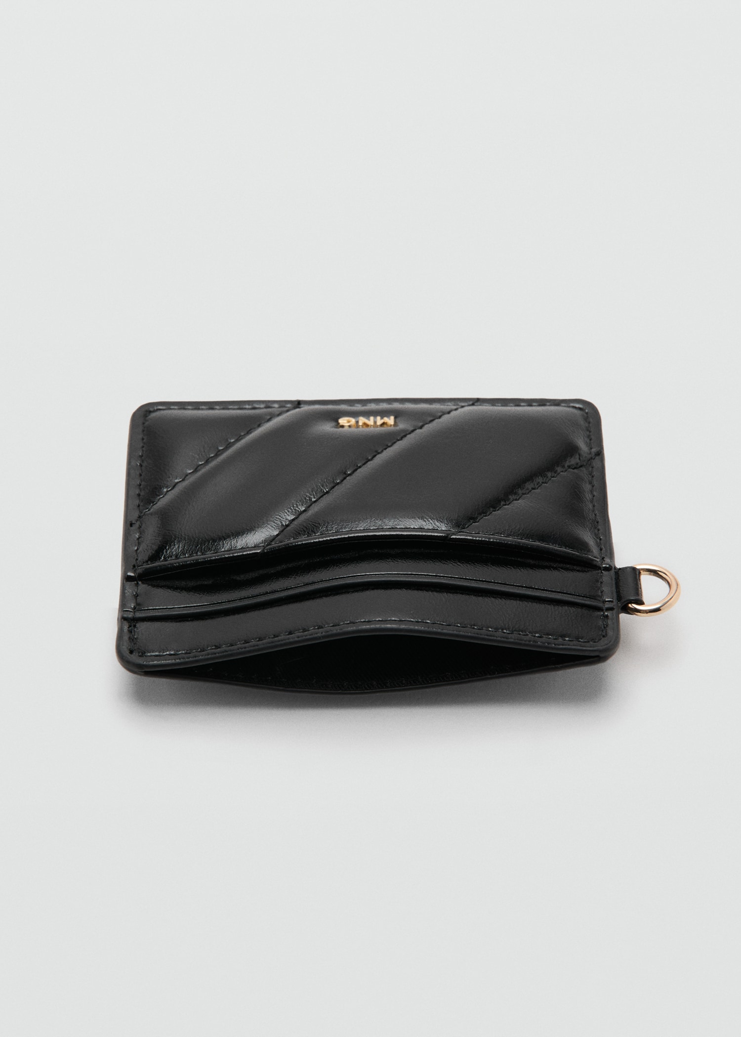 Малък размер. Капитониран дизайн. Лачен ефект. Шест отделения за карти от едната страна. Без закопчаване.