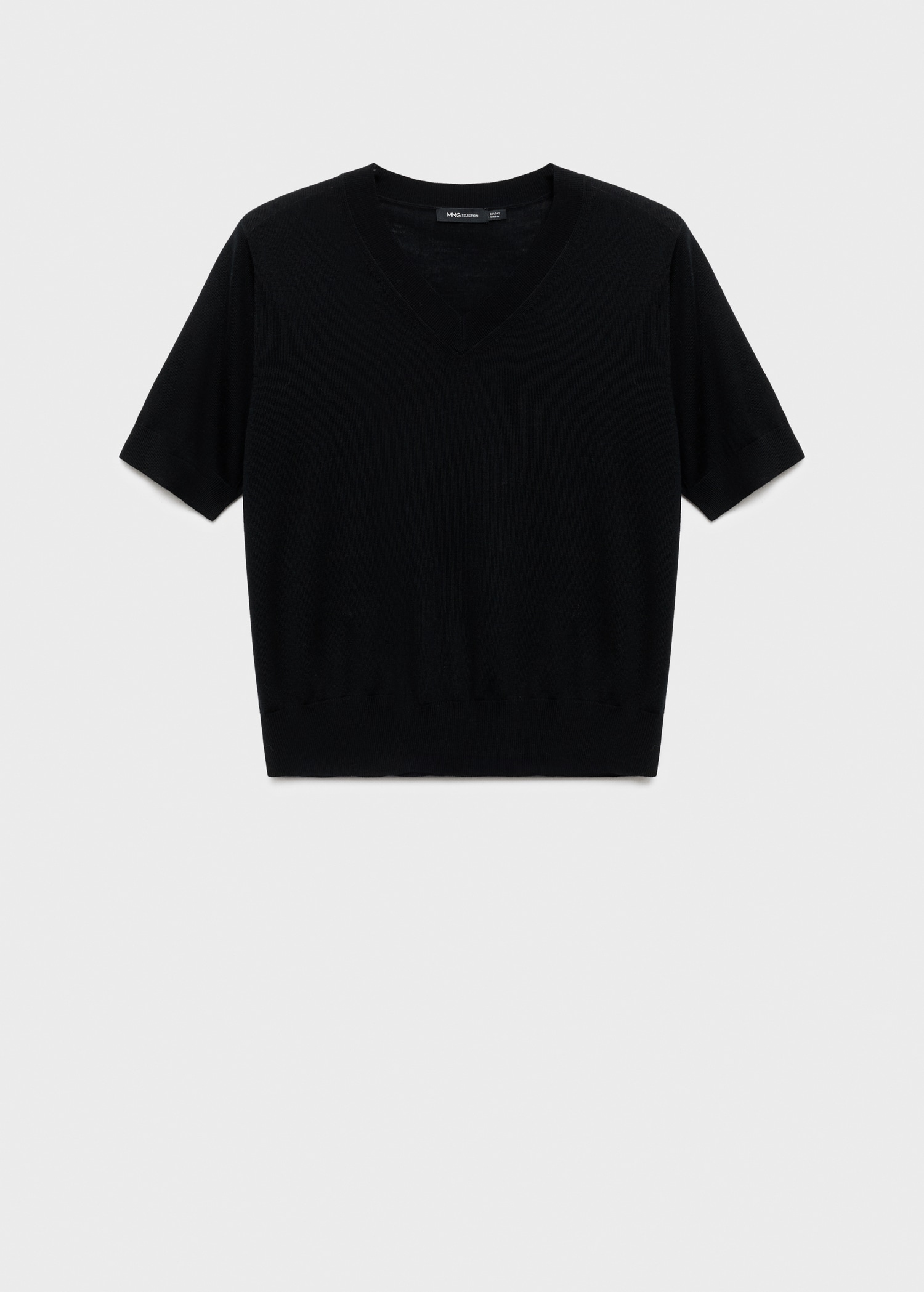 Материя от 100% вълна. Фина плетена материя. Прав дизайн. V-образно деколте. Къс ръкав. без закопчаване.
