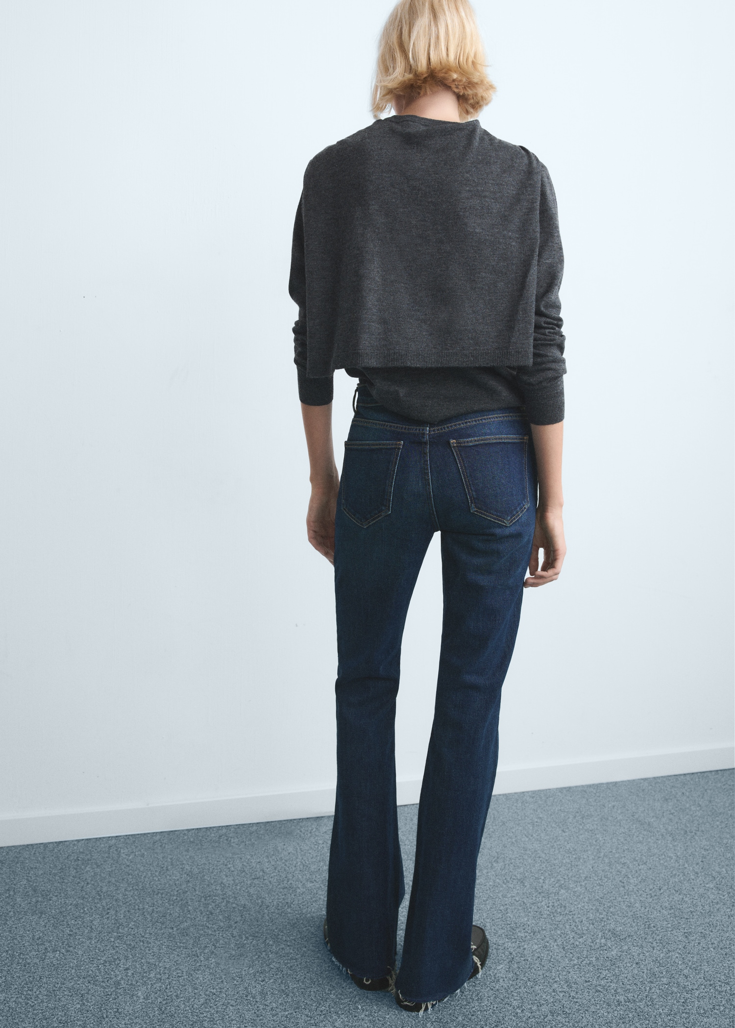 Памучна материя в дънков стил. Удобна еластична материя. Дълъг дизайн. Разкроен стил. Средна височина. Халки за колан. Пет джоба. Предно закопчаване с цип и копче. Вътрешен шев 83 см.