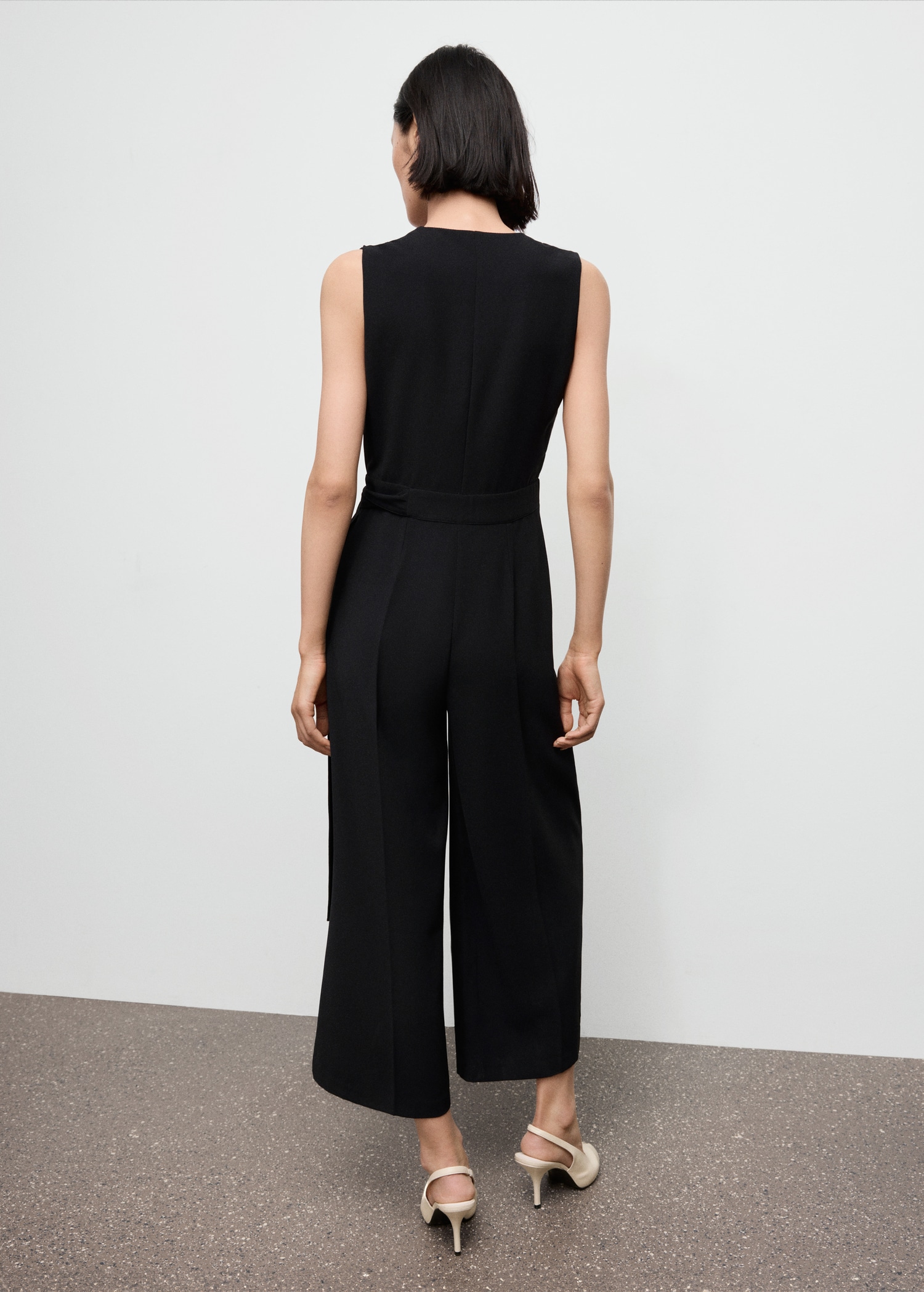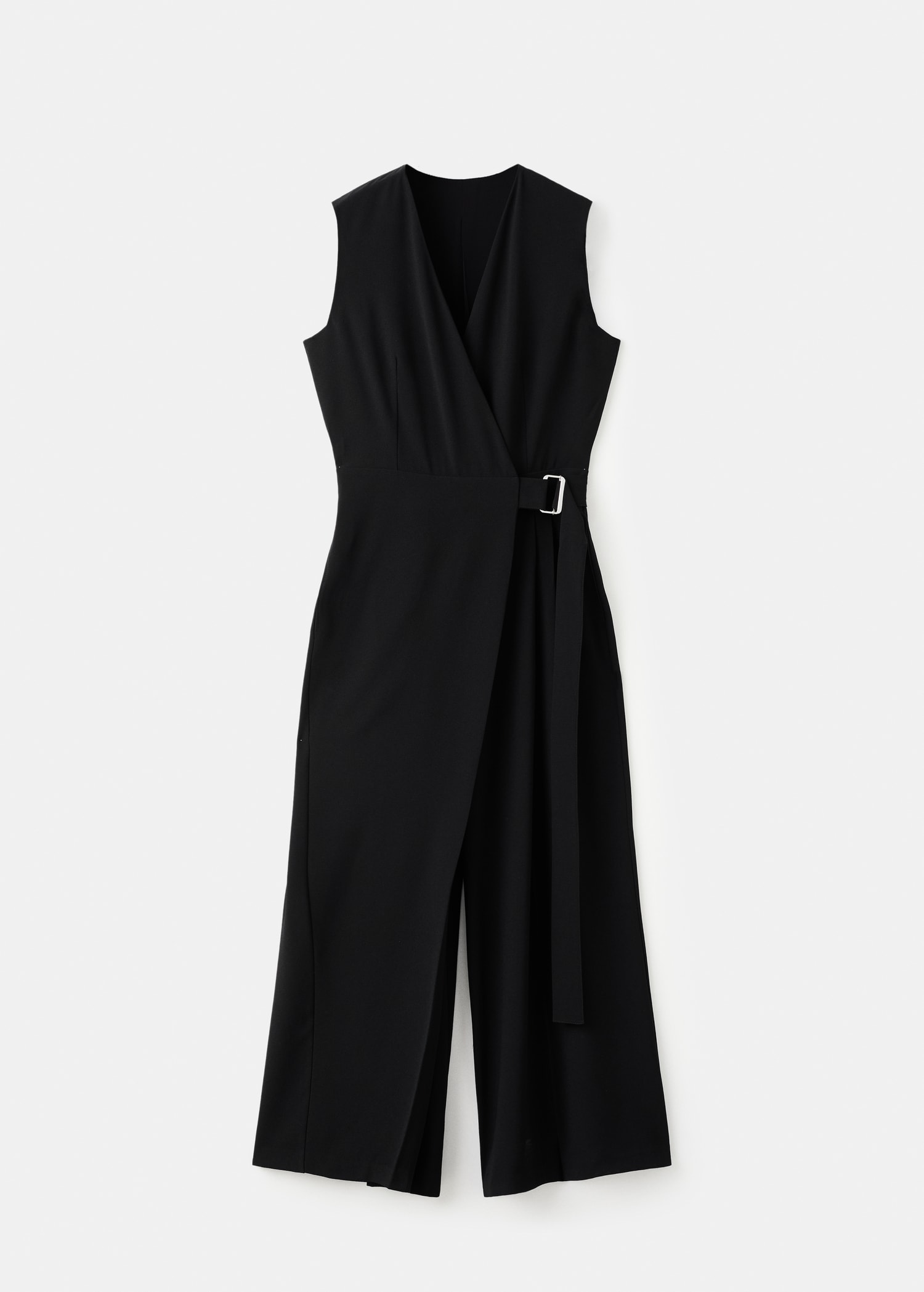 Прав дизайн. Кроп дизайн. Кръстосан дизайн. Деколте тип 'пико'. Без ръкави. Широки презрамки. Колан с катарама. Два странични джоба. Вътрешна подплата.