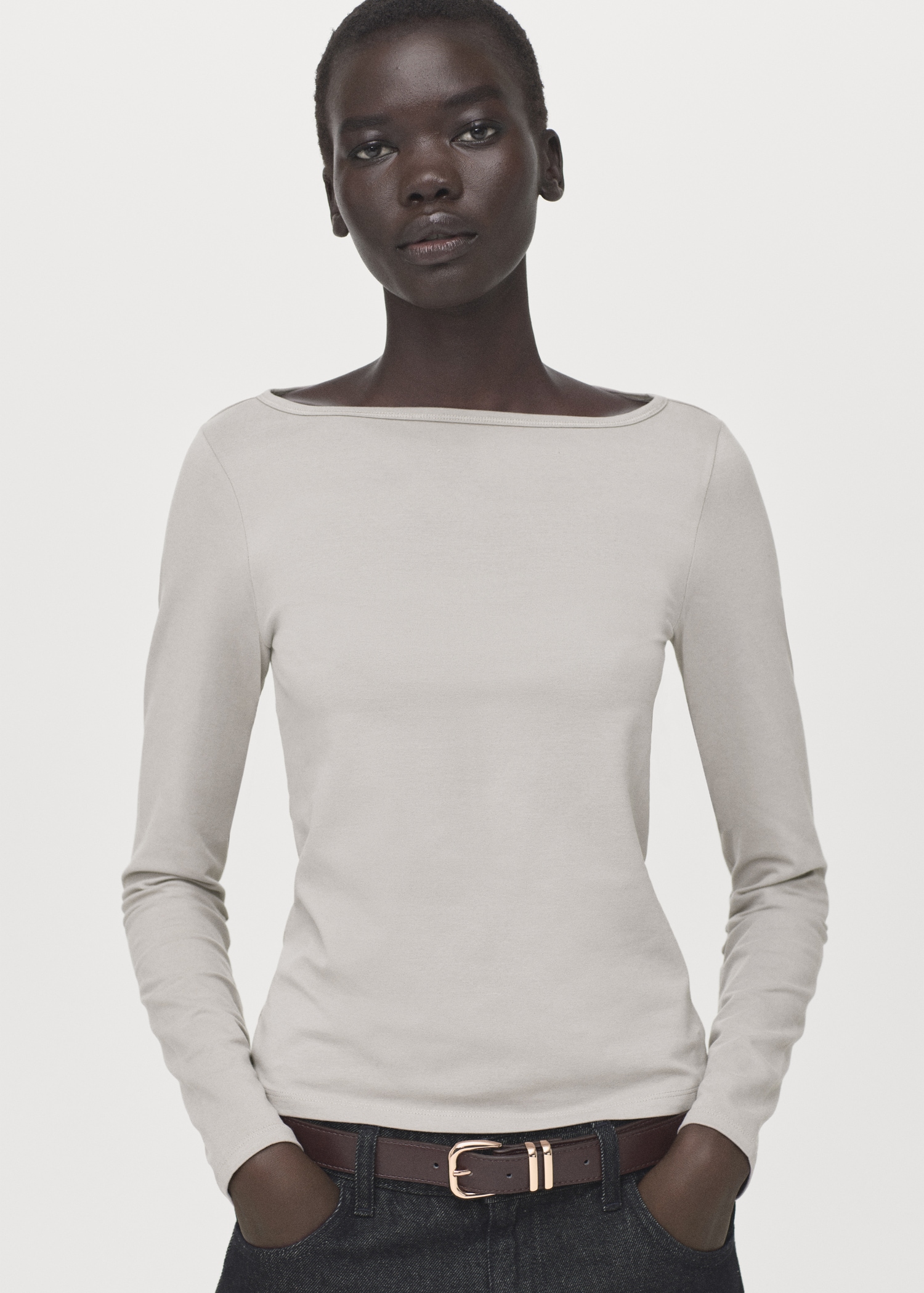 Плат 100% памук. Втален дизайн. Деколте тип лодка. Дълги ръкави. Без закопчаване.