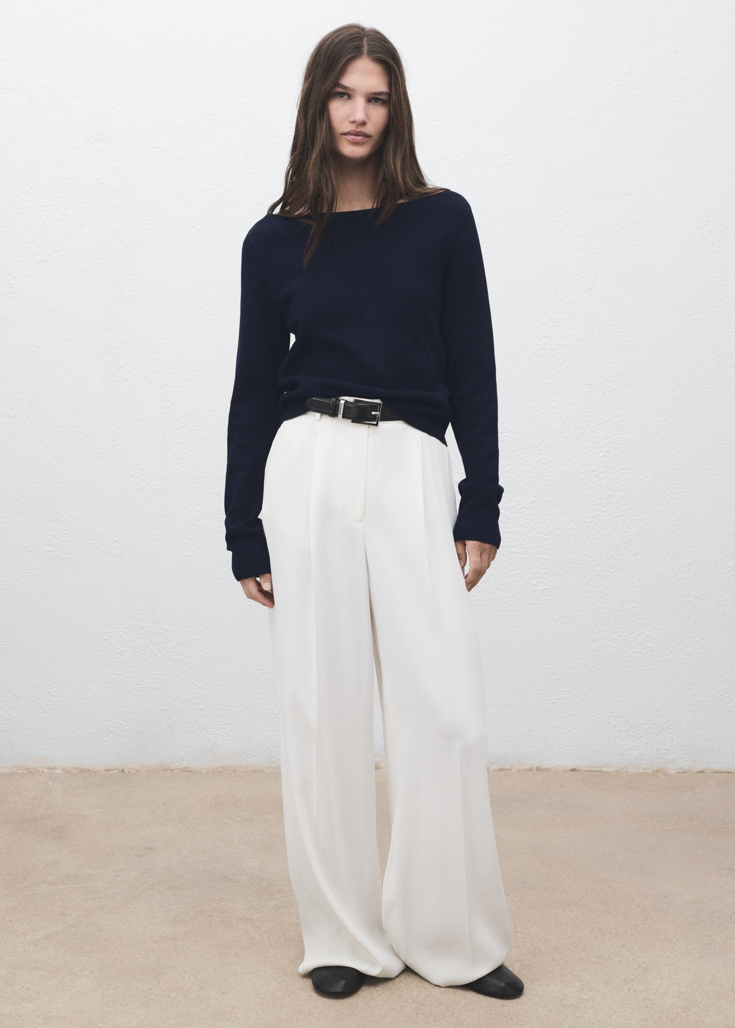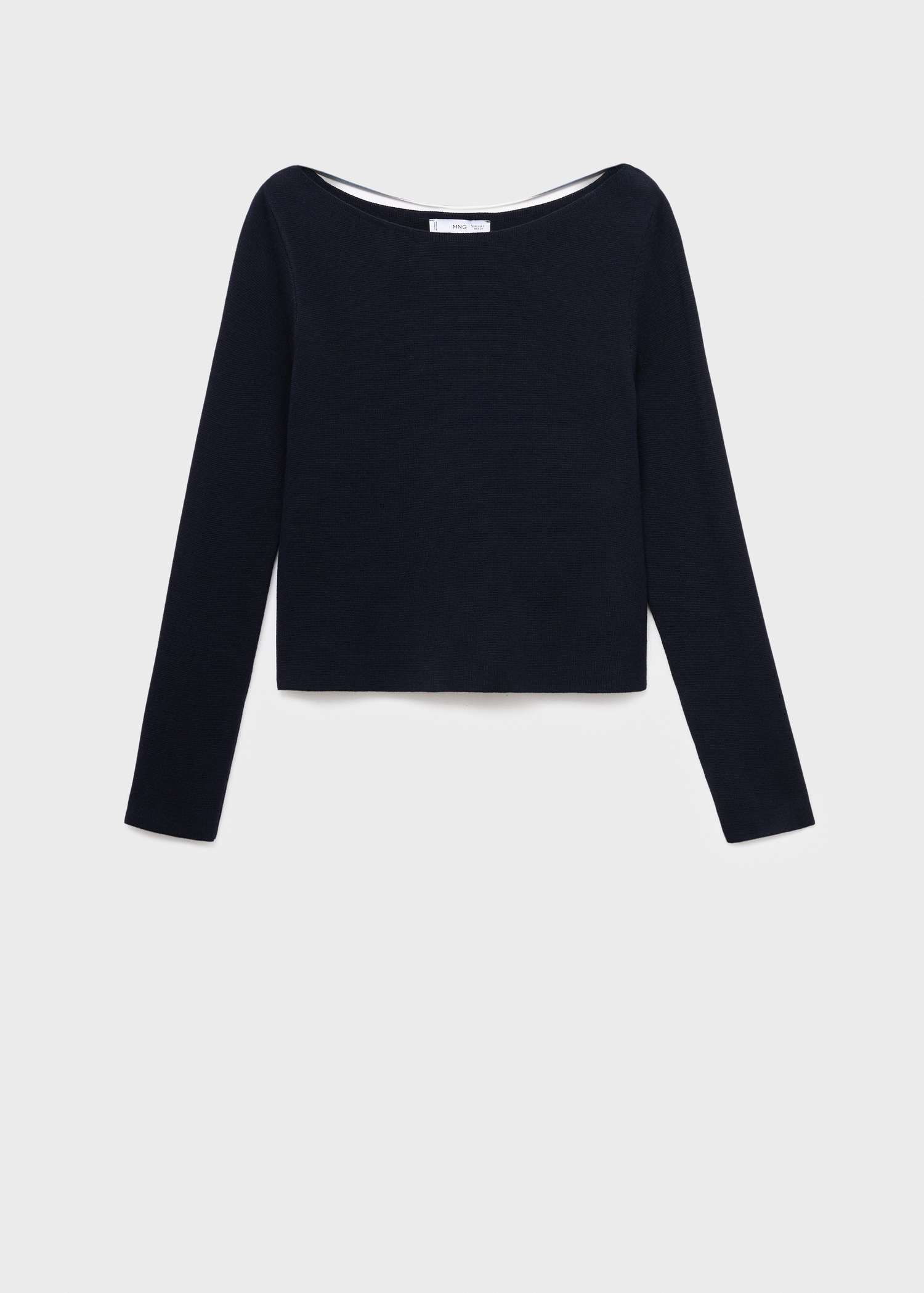 Фина плетена материя. Прав дизайн. Лодка деколте. Дълъг ръкав. Без закопчаване.