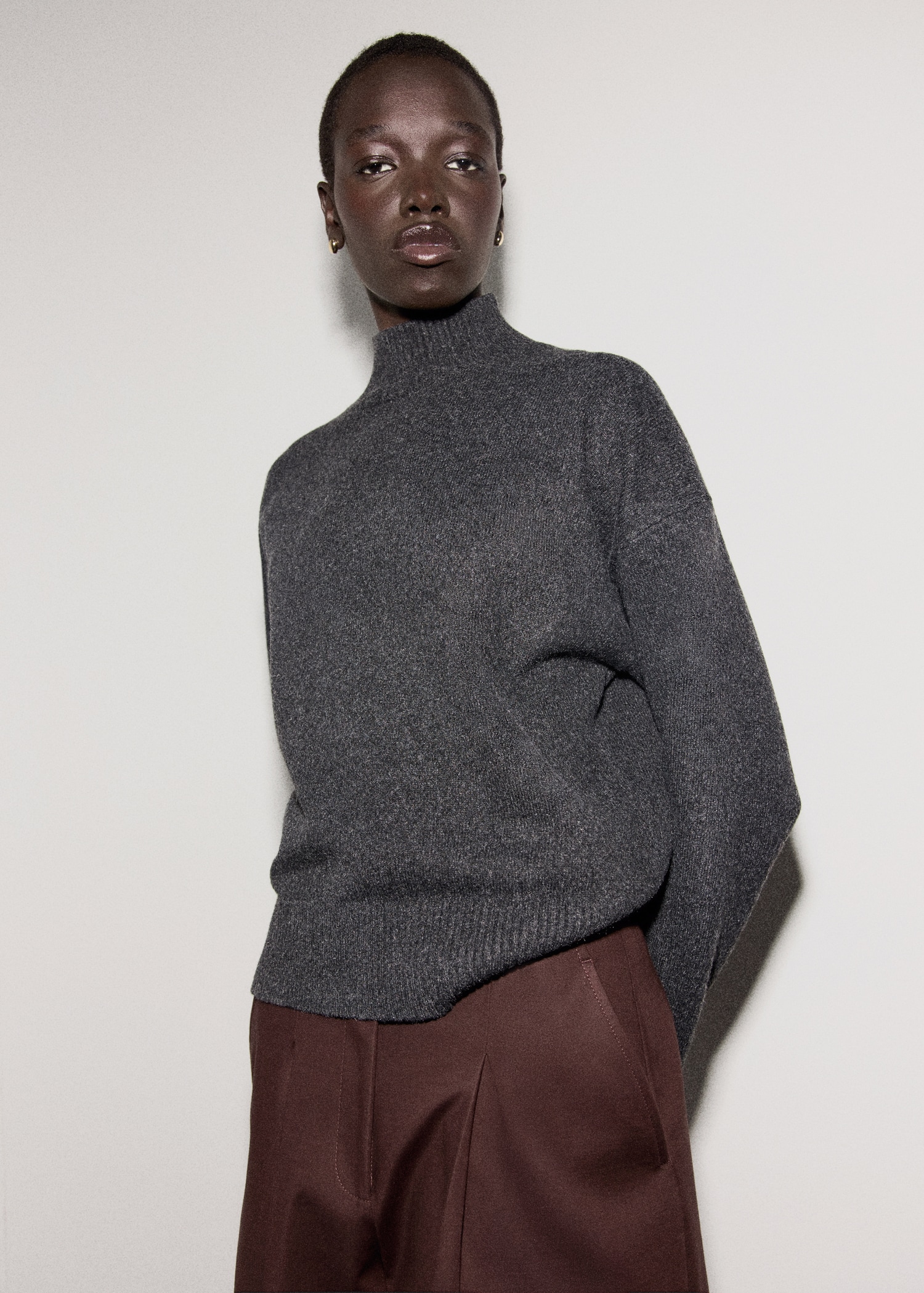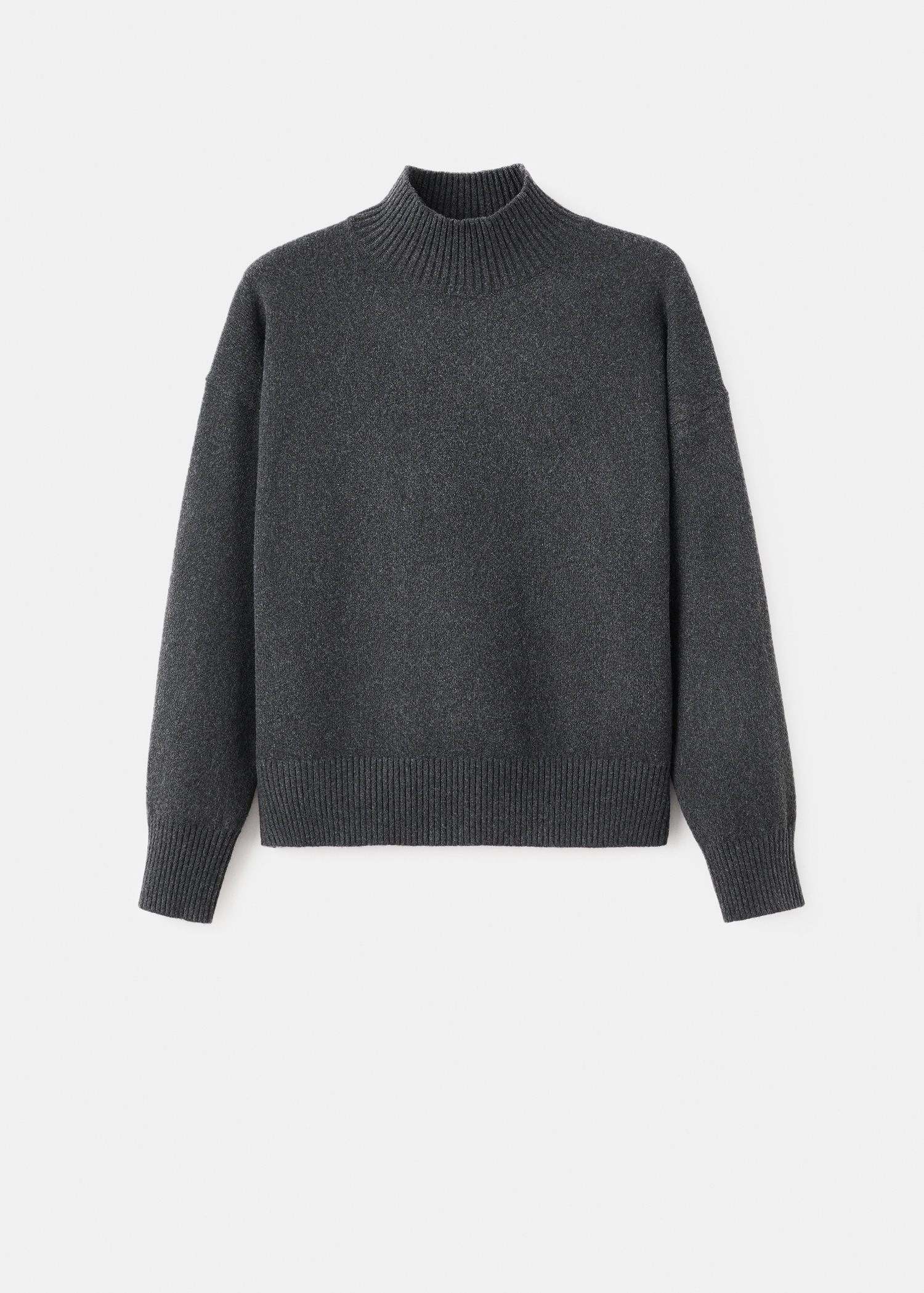 Средно плетиво. Прав дизайн. Висока яка. Дълъг ръкав.
