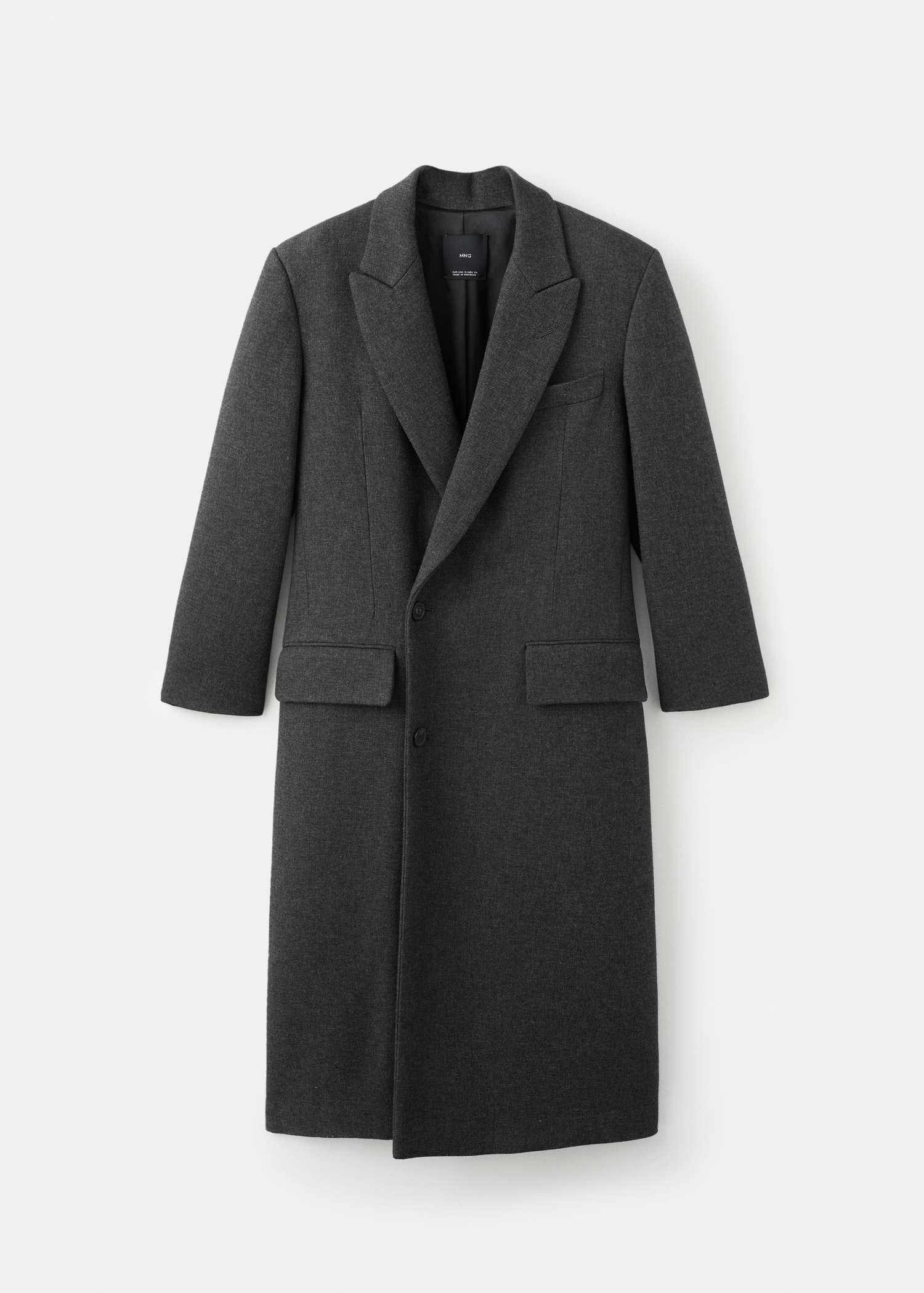 Дълъг дизайн. Прав дизайн. V-образно деколте с ревер. Яка с прорез. Дълъг ръкав. Джоб с кант на гърдите. Два джоба с капаци отпред. Заден отвор в долната част. Предно закопчаване с кръстосани копчета. Вътрешна подплата.