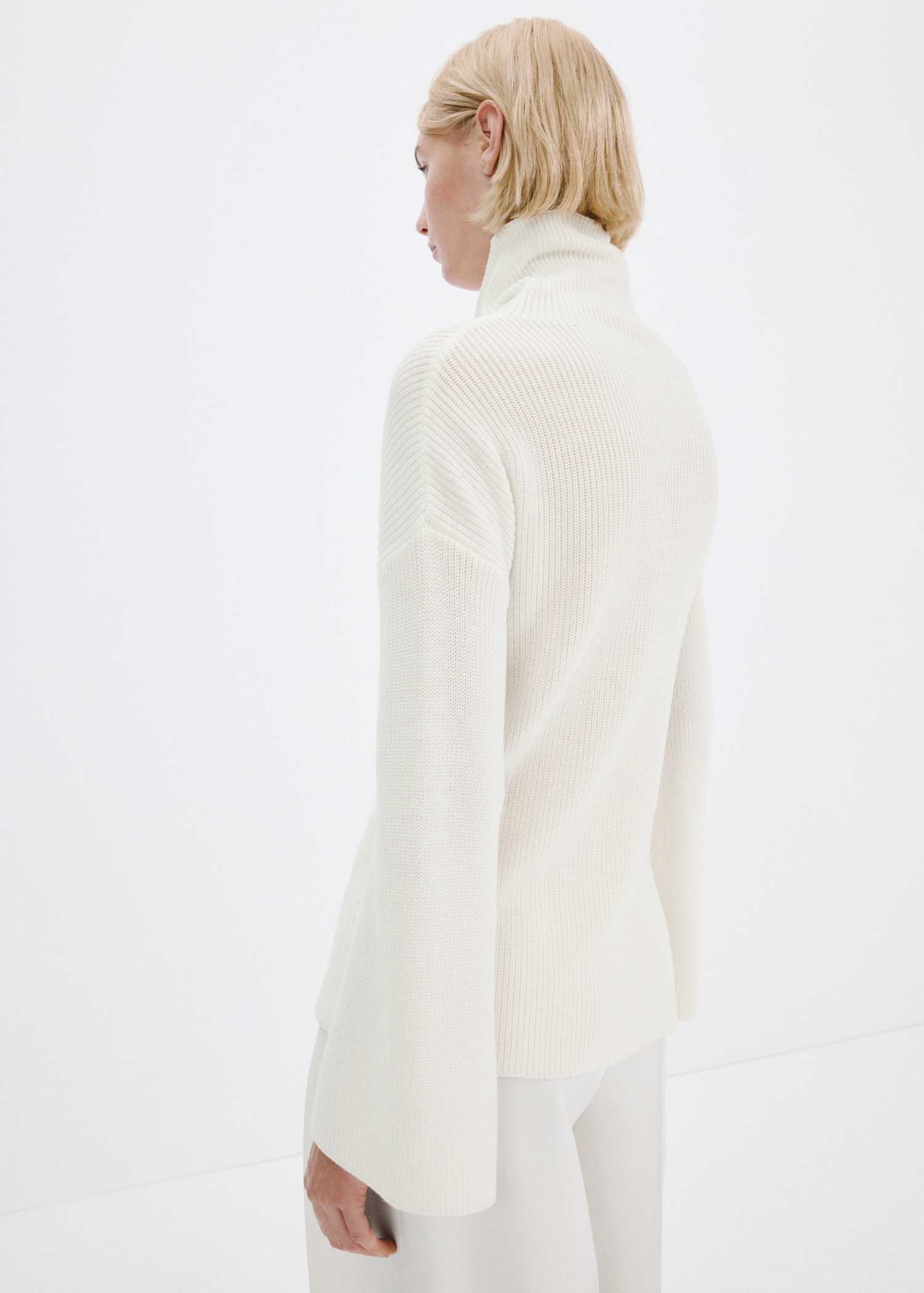 Плетена материя. Прав силует. Висока яка. Странични отвори. Без закопчаване.