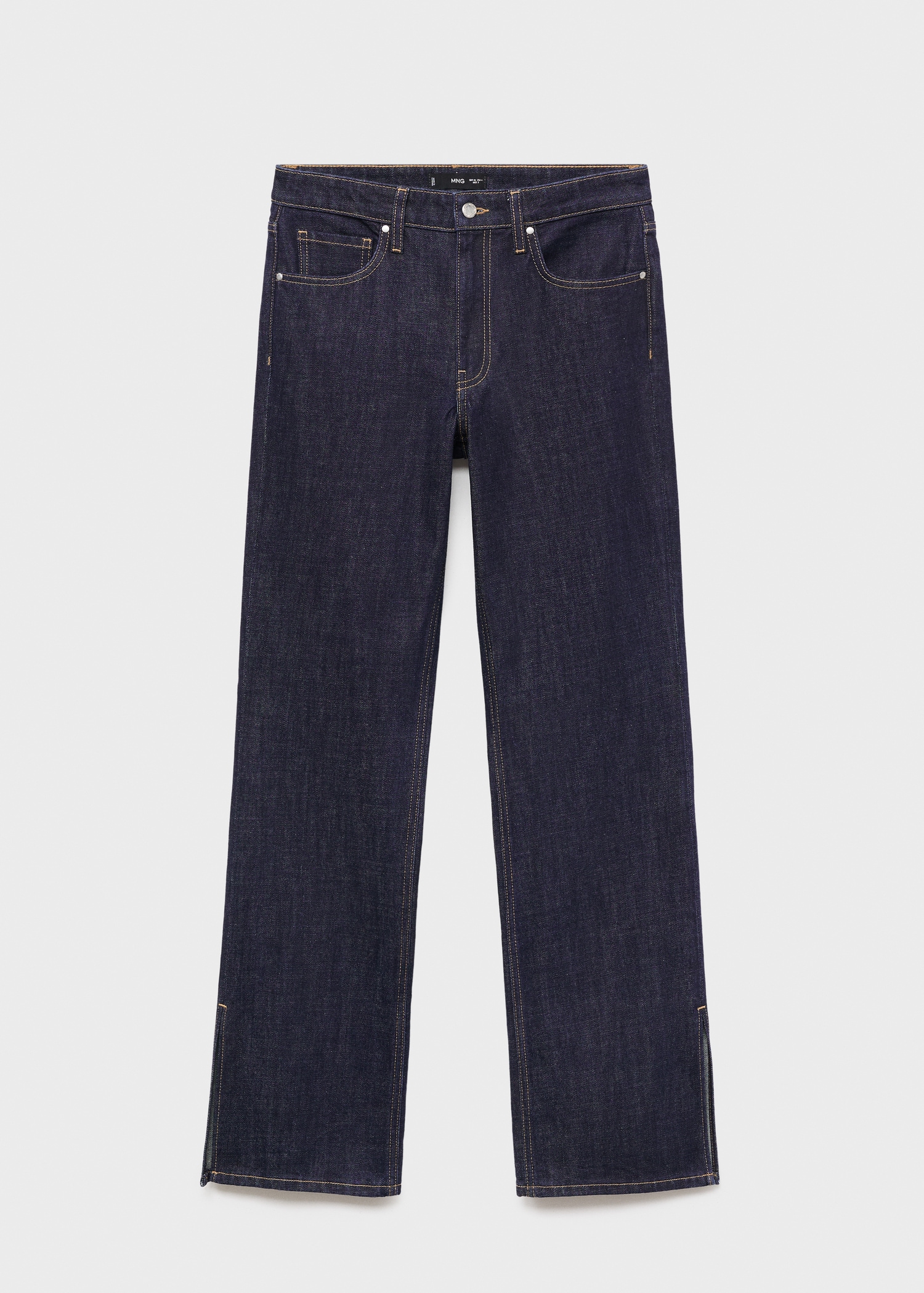 Памучна материя в стил деним. Дълъг дизайн. Прав дизайн. Средна талия. Халки за колан. Пет джоба. Подгъв с цепка отстрани. Закопчаване с копче и цип. Вътрешен шев 83 см.