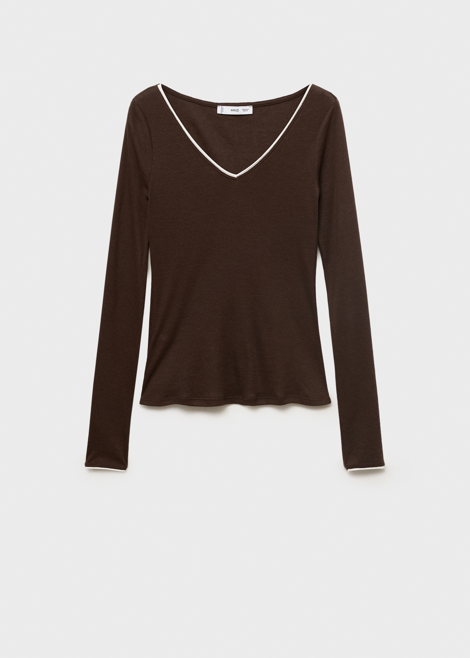 Изработена от смесена памучна материя, тази дреха има прилепнал и комбиниран дизайн. V-образното деколте и дългите ръкави придават стил